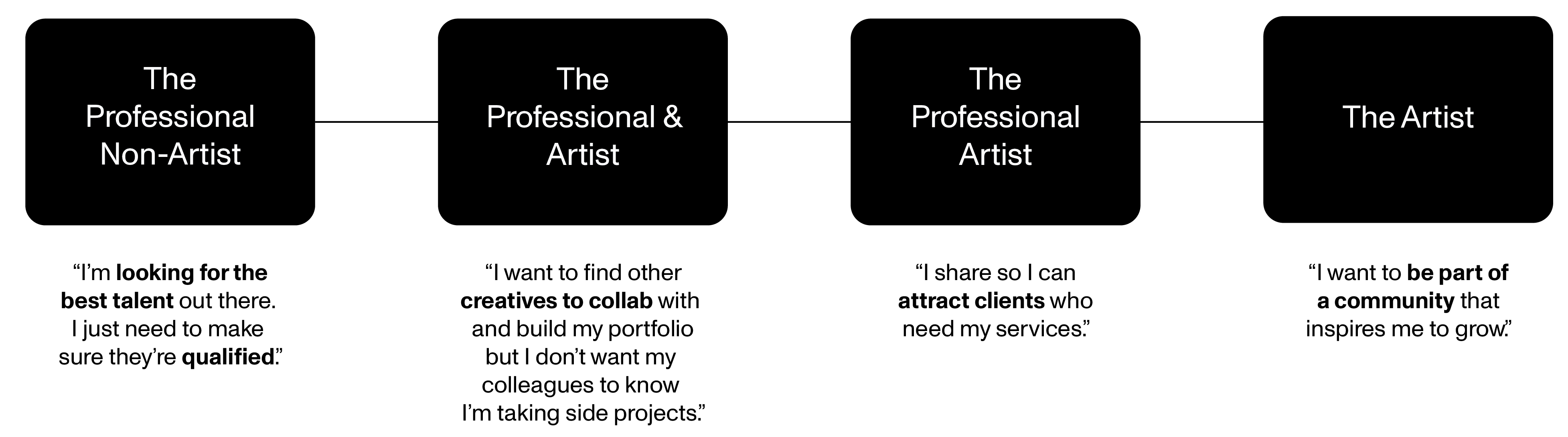 When designing our new feature we oriented our solutions around our key insights; on creative talent discovery, portfolio viewing and customization, and connecting with community.